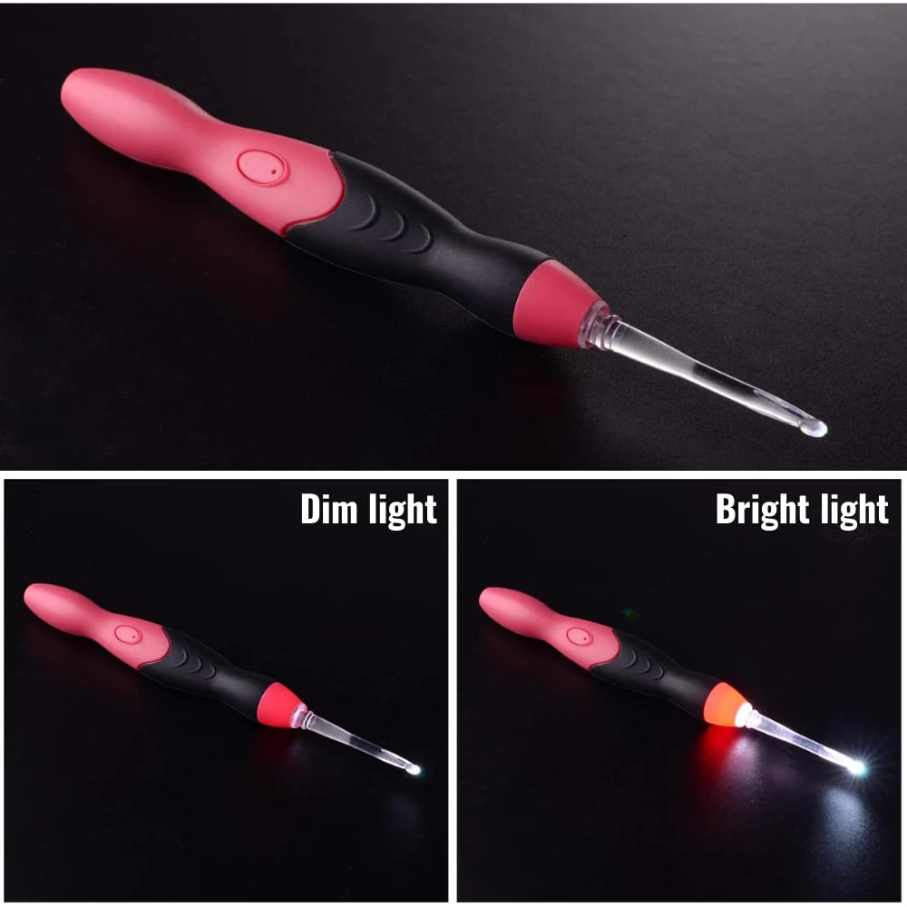 2 modes de luminosité - Deux niveaux de luminosité réglables (faible ou forte) s'adaptent à différentes conditions d'éclairage pour un crochetage sans effort. Vous pouvez même voir clairement avec le fil le plus foncé.
